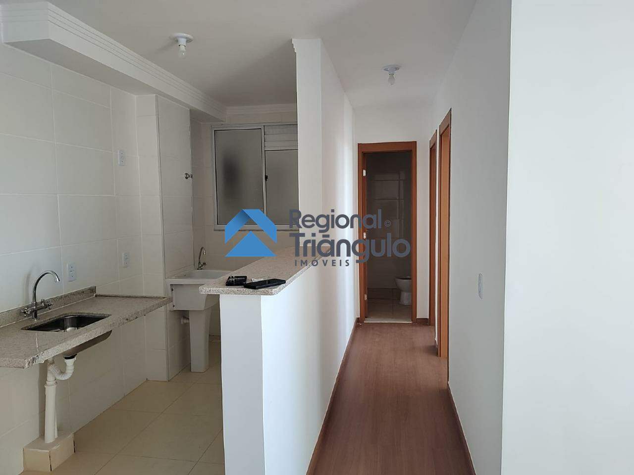 Unidade com 2 quartos, sala integrada à cozinha, banheiro social e 1 vaga de garagem.