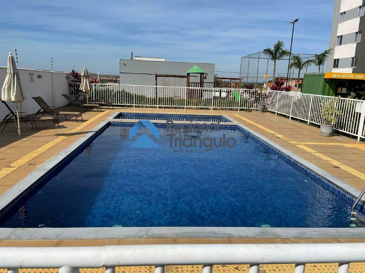 Condomínio com piscina, salão de festas, quadra poliesportiva, playground e portaria 24h — conforto e segurança para toda a família.